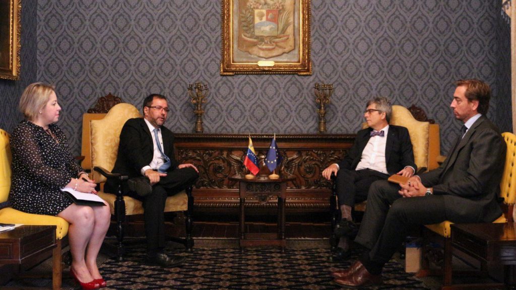 El encuentro tuvo como escenario la Casa Amarilla “Antonio José de Sucre”, en Caracas. El diplomático venezolano expresó la disposición del gobierno del presidente Nicolás Maduro de que esta nueva etapa de las relaciones con la UE se desarrolle en un clima de respeto, diálogo sincero y no injerencia en los asuntos internos, de acuerdo a lo que rige el Derecho Internacional y la Carta de la ONU.